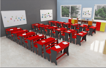 Kids Classroom With Grey And Red Furniture By Abhishek Kumar