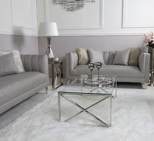 Zenn Contemporary Stainless Steel Clear Glass Lounge Living Room