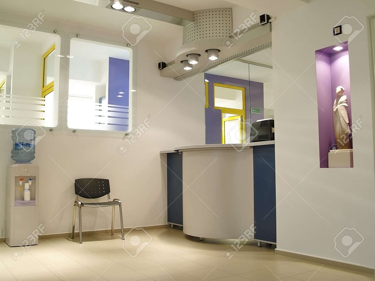 Aseptic Hospital Reception Bureau And Waiting Area Stock Photo