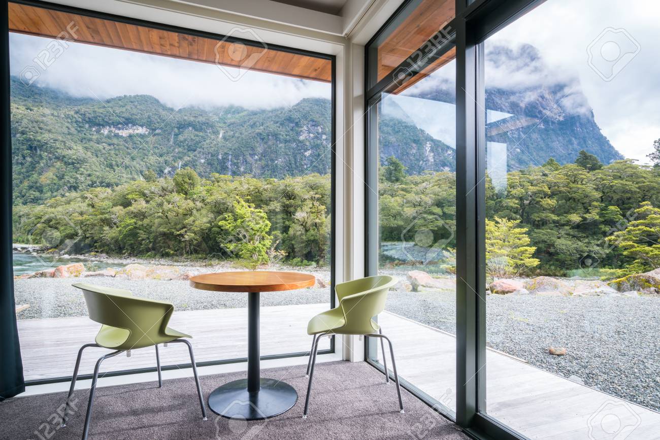 Cozy Living Room Or Restaurant Interior Design With Nature Scenic