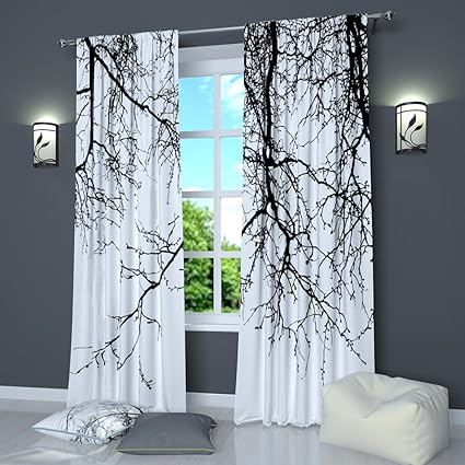 Amazon Com Black And White Curtains By Factory4me Black Branches