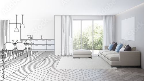 Modern House Interior Design Project Sketch 3d Rendering Stock