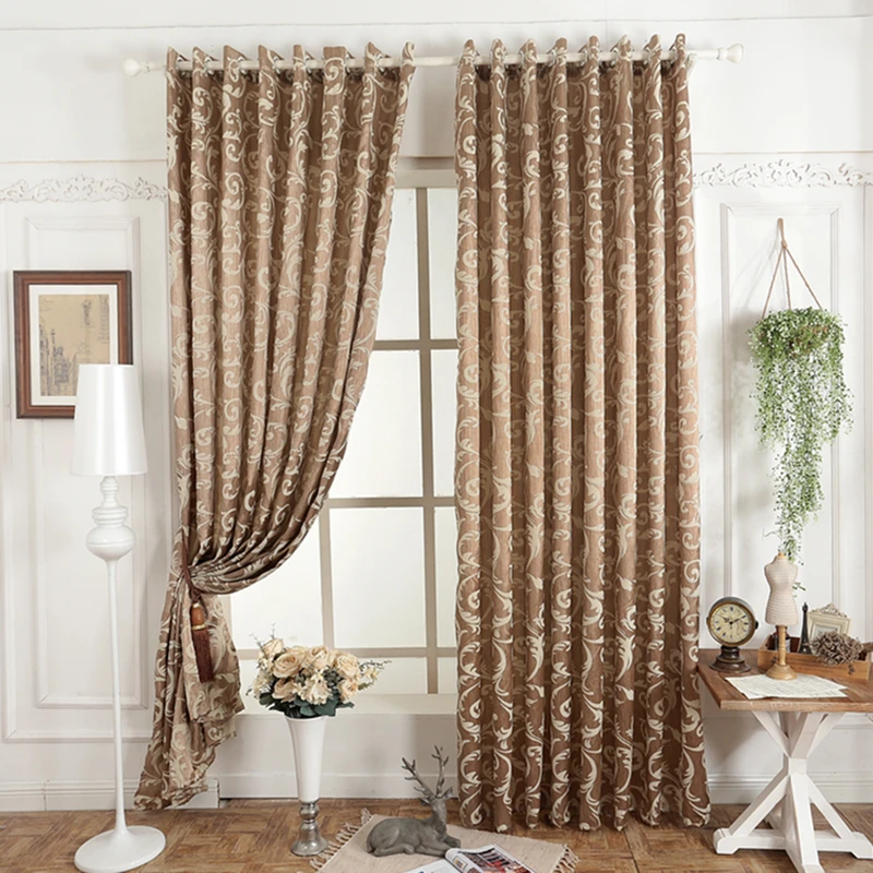 Simple Chenille Brown Spliced Elegant Curtains Bedroom Study